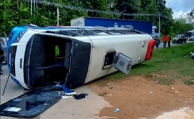 Amazonas/AM – O Corpo de Bombeiros Militar do Amazonas (CBMAM), em ação conjunta com o Serviço de Atendimento Móvel de Urgência (Samu), socorreu, na manhã deste domingo (07/05), as vítimas de um acidente de trânsito entre uma carreta e um micro-ônibus, no KM 17 da BR-174. Ao todo, 30 pessoas estavam no veículo de passeio, que foi arremessado para a lateral da estrada.