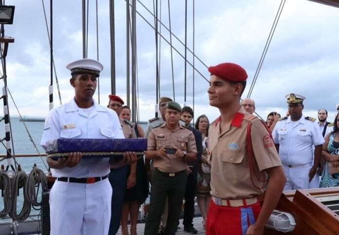 A cerimônia contou com a presença do Vice-Almirante André Luiz Silva Lima de Santana Mendes, Comandante do 2° Distrito Naval; do Secretário de Turismo do Estado da Bahia, Fausto Franco; do Sub-Diretor do Colégio Militar de Salvador, Coronel Ricardo Guglielmi; e do Comandante do “Cisne Branco”, Capitão de Mar e Guerra Marcos André Silva Araújo, entre outras autoridades. Também prestigiaram a celebração os pais do vencedor, a senhora Regiane Maria Luquini de Souza e o senhor Marcos Francisco de Souza, bem como a professora de Língua Portuguesa do CMS, senhora Esmeralda Barbosa Cravançola.