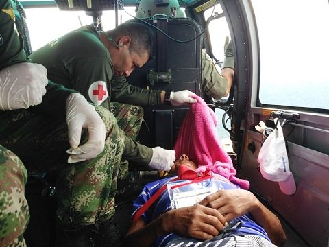A aeronave utilizada para o EVAM foi um helicóptero HM-1 Pantera, que levou o Ten médico John Reatiga e o Sgt socorrista Carlos Castro, militares colombianos, para prestar o atendimento. O resgate durou cerca de três horas, incluindo o percurso de ida e volta e o tempo em solo. O morador foi levado ao Hospital de Letícia, na Colômbia, onde foi diagnosticado com uma hemorragia interna. Ele necessita de cuidados, mas a situação está estável.