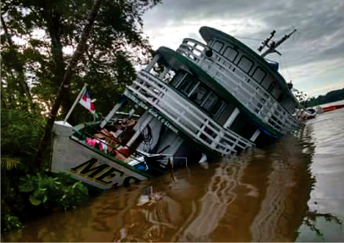 O barco ‘Mestre Ênio’ naufragou, na manhã desta terça-feira (25), após bater em um tronco de uma arvore, no rio Solimões, nas proximidades do município de Alvarães (a 531 Km de Manaus).