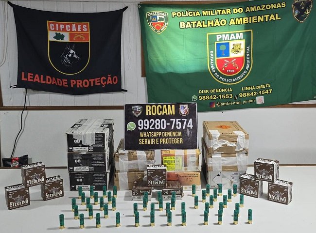 Amazonas/AM – A Polícia Militar do Amazonas (PMAM) em operação na Base Tiradentes, apreendeu nesta quinta-feira (26/03) no porto de Jutaí (a 750 KM de Manaus), um carregamento com mais de 2,7 mil munições para armamento calibre 16. A apreensão foi realizada durante abordagem a uma embarcação que realiza vendas entres municípios de Fonte Boa, Jutaí e Tabatinga. A suspeita de ser a responsável pelo transporte foi presa.