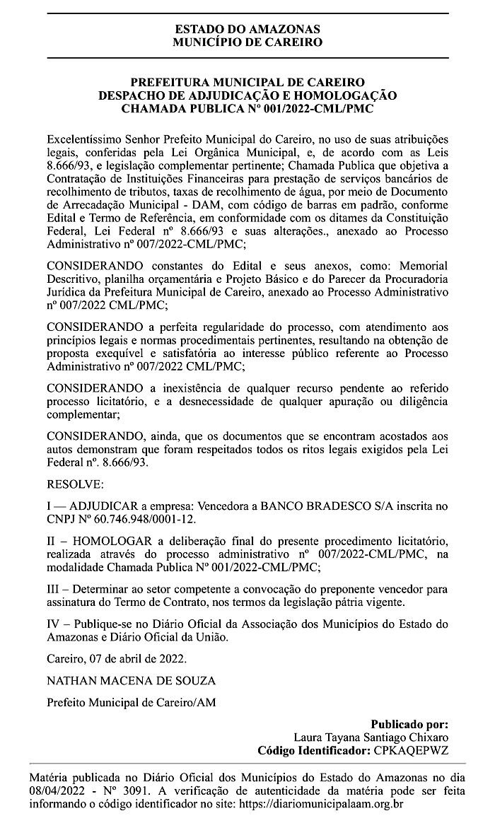 Fonte: Diário Oficial dos Municípios do Estado do Amazonas no dia 08/04/2022 – Código Identificador: CPKAQEPWZ