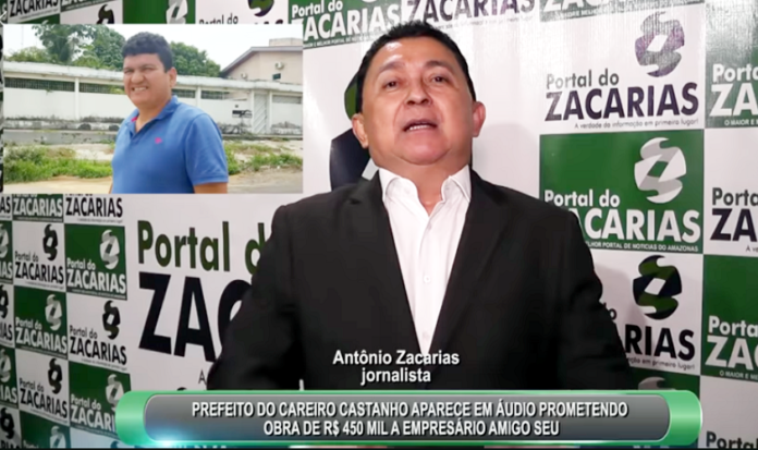 Manaus/AM – O Jornalista Antônio Zacarias do Portal do Zacarias um dos portais de maior ausência no Amazonas publicou ontem (04) a matéria “ESCÂNDALO! FRAUDE EM LICITAÇÃO À VISTA: Prefeito do Careiro Castanho aparece em áudio prometendo obra de R$ 450 mil a empresário amigo seu. E com verba federal“