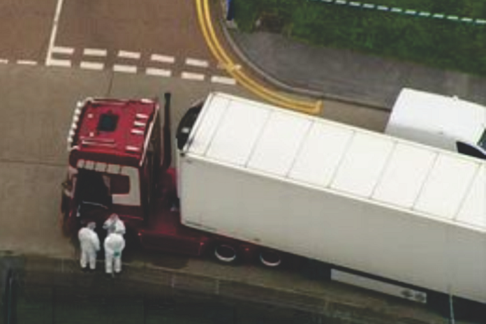 Trinta e nove pessoas foram encontradas mortas na carroceria de um caminhão no parque industrial de Essex, no Reino Unido. O motorista, um homem de 25 anos da Irlanda do Norte, foi detido por suspeitas de homicídio.