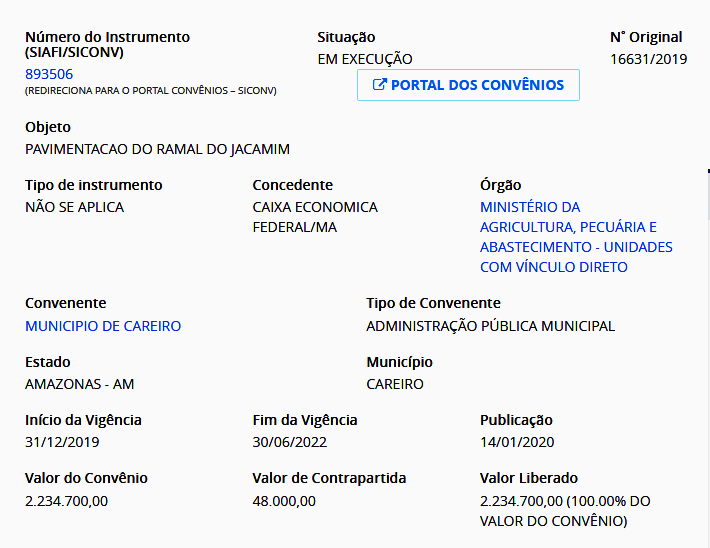 Recurso da Prefeitura do Careiro R$ 48.000,00: Quarenta e oito mil reais, Contrapartida da Prefeitura Municipal do Careiro no Convênio.
