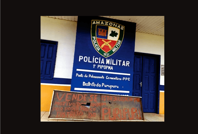 Careiro/AM – Para protestar contra a falta de segurança pública no Distrito do Purupuru e chamar a atenção das autoridades, moradores do Distrito do Purupuru no Careiro Castanho colocaram placa de venda no prédio onde supostamente deveria funcionar o Posto de Policiamento Comunitário (PPC) do Purupuru, pelo menos é o que está escrito na placa, fotos e vídeos foram divulgados nas redes sociais.