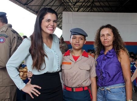 A Deputada Alexandra Campêlo (PMDB) acompanhada da Aluna Ianca Nayara e de sua mãe a Sra. Telma – Foto – Edson Brito/Portal do Careiro.