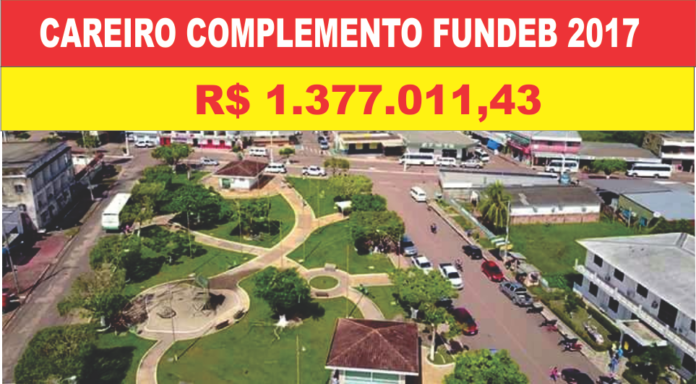 Conforme publicação da CNM – Confederação Nacional dos Municípios o município do Careiro-Am receberá R$ 1.377.011,43 (Hum milhão trezentos e setenta e sete mil, onze reais e quarenta e três centavos). Referente a valores da Complementação do Fundeb resíduos de 15% de 2017. Confira na tabela abaixo o município está marcado na cor vermelha.