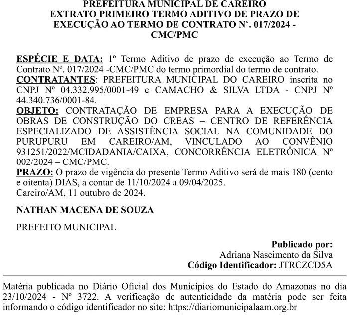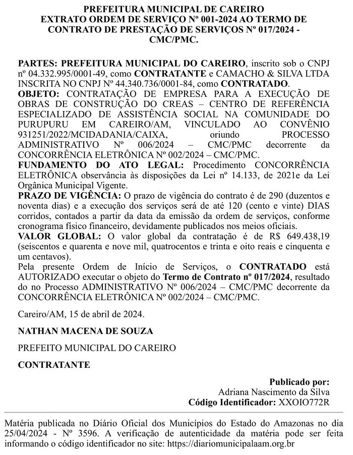 Fonte: Diário Oficial Eletrônico dos Municípiosdo Estado do Amazonas