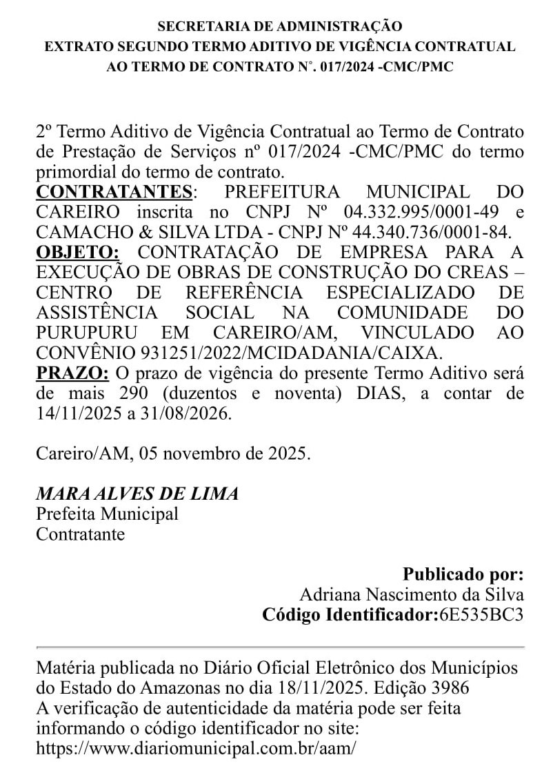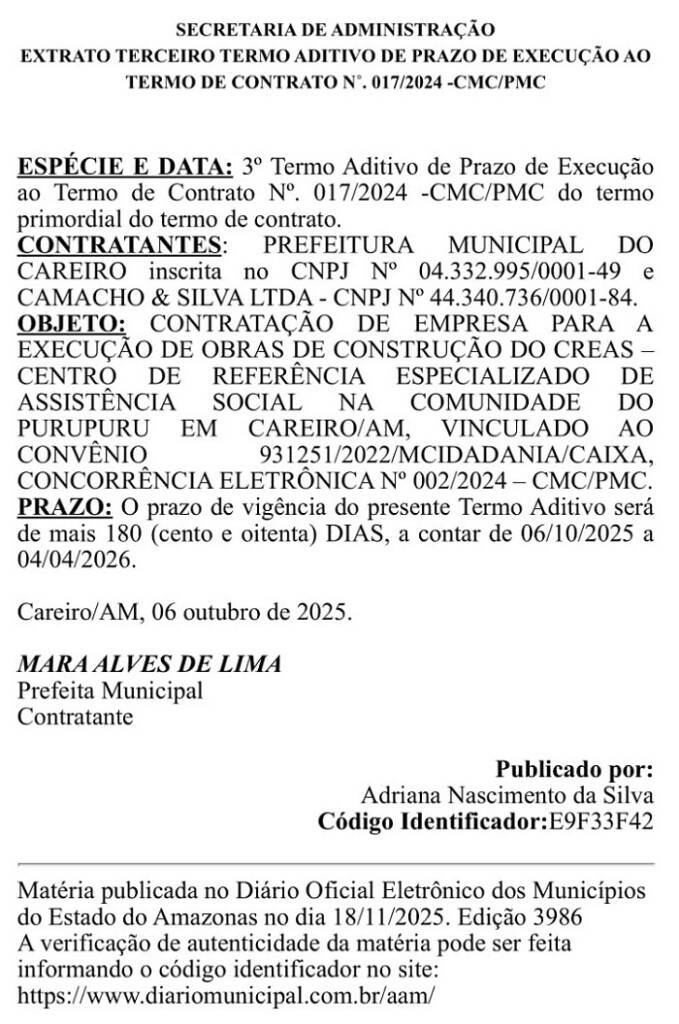 Careiro/AM – Mesmo após a liberação integral em parcela única de mais de R$ 648 mil para a construção do CREAS Purupuru em 2024, a obra segue inacabada. O recurso, que já deveria ter garantido a conclusão do projeto, não se refletiu em da construção. Segundo novo aditivo de prazo se cumprido a entrega ainda o povo do Purupuru ainda deve esperar pelo menos mais 180 dias, levantando questionamentos sobre a eficiência da gestão, a fiscalização do convênio e a real aplicação dos valores públicos destinados ao CREAS-Purupuru.