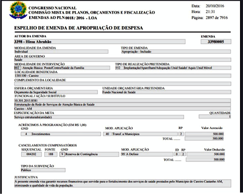 O Deputado Federal Hissa Abrahão (PDT) destinou Emenda Parlamentar no valor de R$ 500.000,00 (Quinhentos mil reais) para o município do Careiro, a emenda parlamentar se destina a área de saúde do município do Careiro.