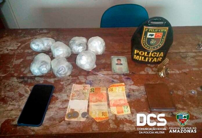 Careiro da Várzea/AM – Policiais militares da 8ª Companhia Independente da Polícia Militar (CIPM) detiveram, na manhã desta terça-feira (05/05), um homem de 21 anos por tráfico de drogas, no Porto da Balsa, localizado na rodovia BR-319, Comunidade Gutierrez, município de Careiro da Várzea (a 25 quilômetros de Manaus). Com ele os policiais apreenderam uma mochila de cor preta, contendo sete pacotes possivelmente de substância entorpecente, lacrados com papel filme, uma motocicleta vermelha de placa PHP-9H05, um aparelho celular Samsung, um relógio de pulso, um cordão prateado e a quantia de R$ 93,50 em espécie.