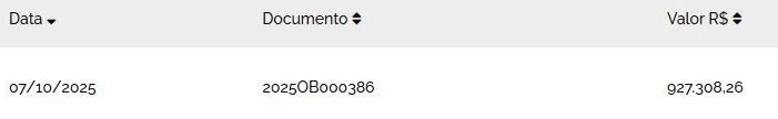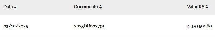 03/10/2025 Data da última liberação valor R$ 4.979.501,60