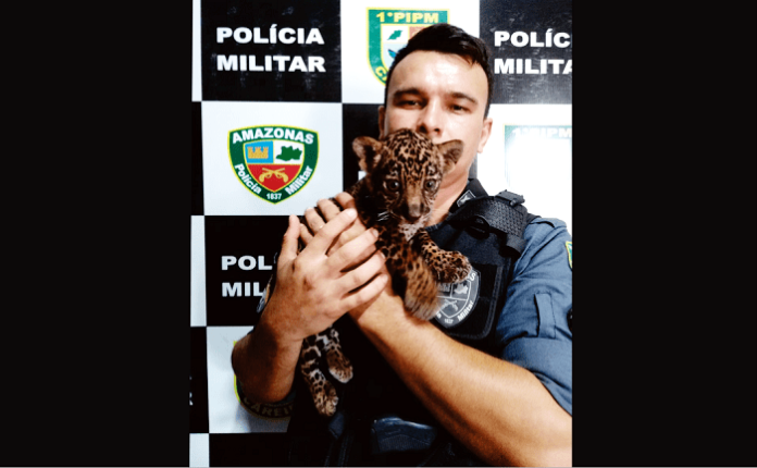 Careiro/AM – A Gu Sv do 1º PIPM CAREIRO CASTANHO foi procurada por popular para informar de um filhote de onça pintada que tinha consigo em sua residência.