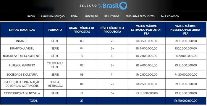 O edital ainda inclui processos para a produção de séries de ficção e animação voltadas para o público infantil e infantojuvenil; projetos documentais sobre natureza e meio ambiente; filmes, séries e documentários sobre o futebol feminino; além de projetos sobre a sociedade e a cultura.