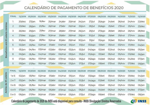 Segundo o instituto, para quem recebe um salário mínimo, os depósitos de janeiro serão feitos entre os dias 27 de janeiro e 7 de fevereiro. Para saber a data exata, o beneficiário deve verificar o número final do seu cartão de benefício, sem último dígito verificador, que aparece depois do traço. Segurados com renda mensal acima do piso nacional terão seus pagamentos creditados a partir de 3 de fevereiro. A tabela completa pode ser conferida no site do INSS.