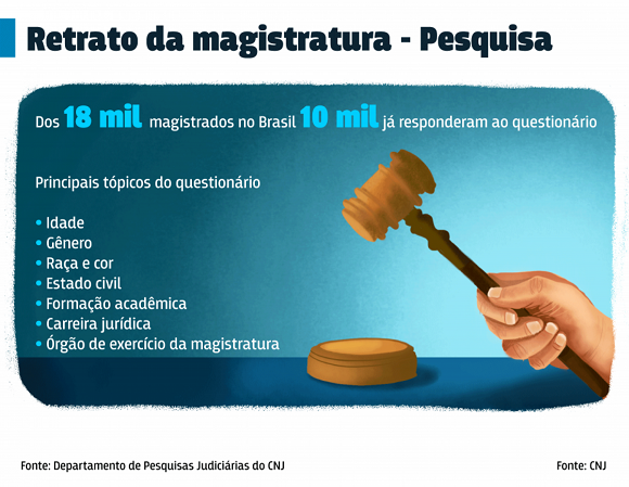 O levantamento, de caráter exclusivamente sociodemográfico, é uma iniciativa do CNJ destinada a atualizar dados de juízes, desembargadores e ministros do Poder Judiciário, compondo importante perfil da magistratura em ampla base de informações que visa, também, subsidiar a formulação de políticas voltadas à carreira dos magistrados.