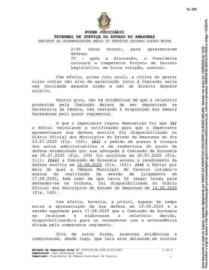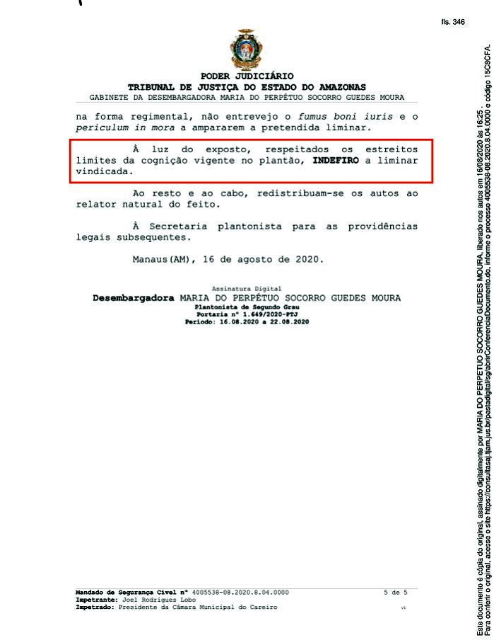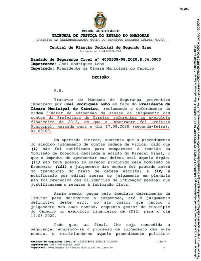 Hoje (16) o ex-prefeito Joel Lobo impetrou via Central de Plantão do Tribunal de Justiça do Amazonas com uma liminar pedido a suspensão da sessão de julgamento de amanhã.