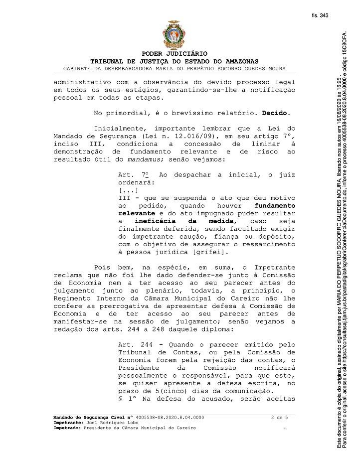 Hoje (16) o ex-prefeito Joel Lobo impetrou via Central de Plantão do Tribunal de Justiça do Amazonas com uma liminar pedido a suspensão da sessão de julgamento de amanhã.
