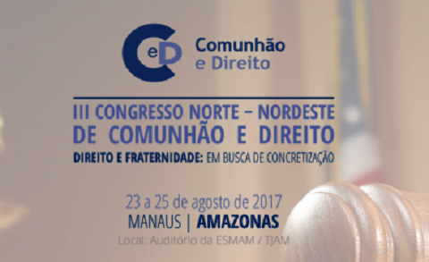 Manaus sediará, no período de 23 a 25 deste mês, o 3º Congresso Norte-Nordeste de Comunhão e Direito, com o tema “Direito e Fraternidade: Em busca da concretização”. O encontro de formação acontecerá das 15h às 19h, no auditório Des. Arthur Virgílio do Carmo Ribeiro, no 2º andar do Centro Administrativo Des. José de Jesus Ferreira Lopes (anexo à sede do TJAM), localizado na avenida André Araújo, s/nº, bairro Aleixo.