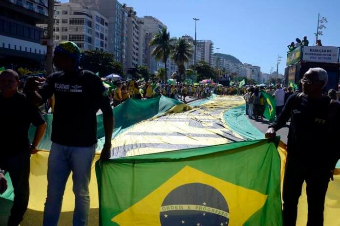 Rio de Janeiro – A manifestação pró-ministro Sergio Moro e em apoio às medidas econômicas do governo federal, convocada por vários movimentos da sociedade civil, levou milhares de pessoas à praia de Copacabana, zona sul da capital fluminense. Bandeiras gigantes nas cores verde e amarelo cobriram várias ruas de Copacabana a partir das 10h.