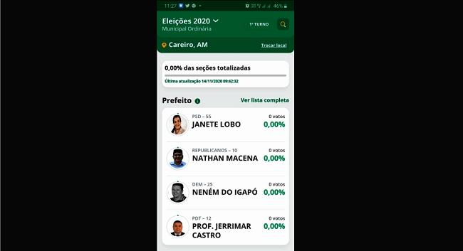 Pesquisamos hoje (14) no aplicativo Resultados do TSE e constamos que não aparece nenhum problema com a candidatura do candidato a prefeito do Careiro Neném do Igapó, conforme foto da capa desta matéria, o aplicativo pode ser baixado na loja Play Store, instalado no seu celular para conferir a informação.