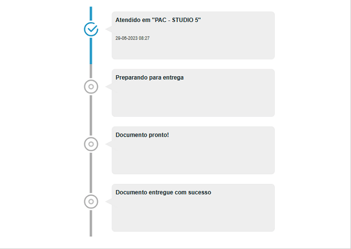 Passados o prazo de 10 dias úteis consultei o site para acompanhamento da emissão e entrega da Nova Identidade e não mostrava nenhum andamento, mais uma vez fui até o PAC – STUDIO 5 e a informação que foi passada foi “É assim mesmo, está demorando muito” que eu tinha que acompanhar pelo site.