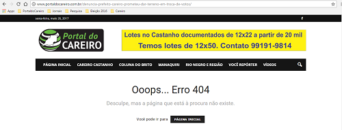 Imagem ao acessar o link da matéria no Portal do Careiro