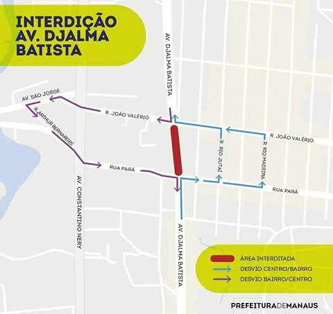 O fechamento da avenida Avenida Djalma Batista hoje às 9h desta sexta-feira (9), uma das principais vias de acesso à Zona Centro-Sul, para obras na rede de drenagem o trânsito está sendo desviado e a Faixa Azul da av. Constantino Nery, até então exclusiva a ônibus, táxis, ambulâncias e viaturas, foi liberada para todos os tipos de veículos.