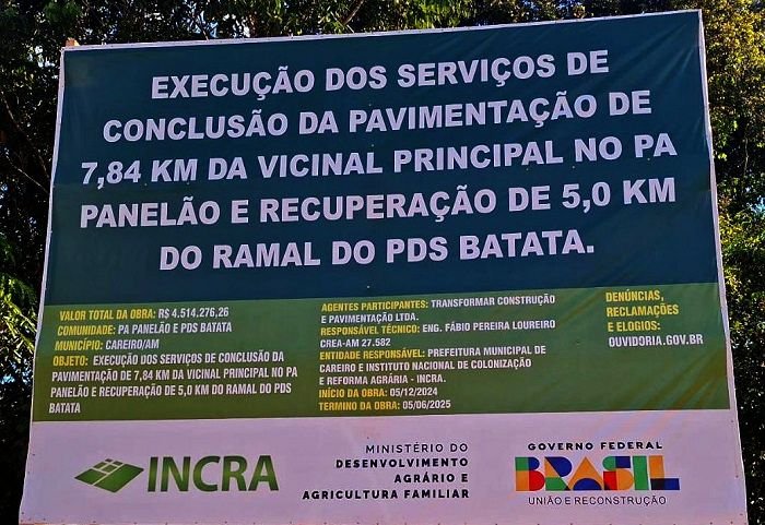 Entenda: O Convênio nº 857019, com vigência iniciada em 2018 — há sete anos — no valor de R$ 5.000.000,00 (cinco milhões de reais), foi firmado entre o Instituto Nacional de Colonização e Reforma Agrária (Incra) e a Prefeitura Municipal do Careiro, 100% do valor do convênio foi liberado.