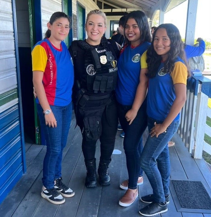 A primeira palestra foi ministrada pela investigadora da polícia civil Akerna Corado, ela destacou a importância dos jovens se inspirarem em profissionais como seus professores, policiais, entre outros.