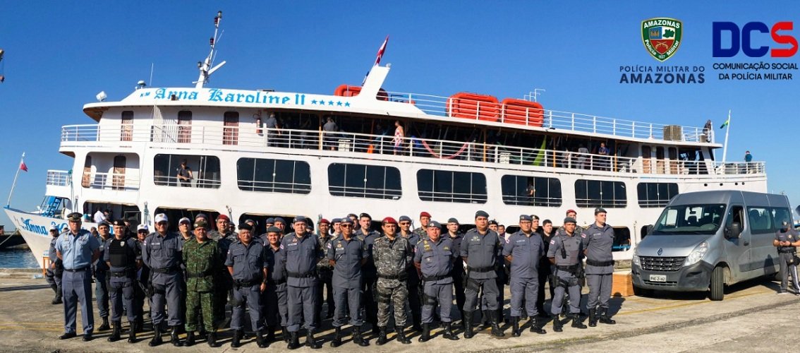 Equipes policiais, equipamentos e aparatos para realizar o plano de policiamento naquela cidade, bem como, para atuar no monitoramento da saída de embarcações do porto Manaus Moderna e fiscalizando a quantidade de passageiros nos barcos e quantidade materiais a ser transportado e realizando todas as modalidades de policiamento.