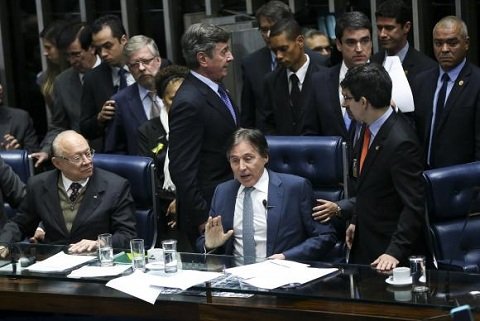 Antes de tentar, pela última vez, retomar a presidência da sessão, Eunício Oliveira criticou o ato das senadoras e disse que “nem a Ditadura Militar ousou ocupar a Mesa do Congresso”. Já os parlamentares da base reclamam da possibilidade de o Senado apenas referendar o texto aprovado pelos deputados, o que faria com que perdesse a função de Casa Revisora.