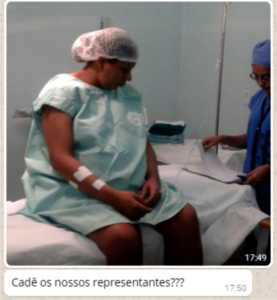 Eu um outra foto da esposa na sala de cirurgia é feita a seguinte pergunta “Cadê os nosso representantes?”.