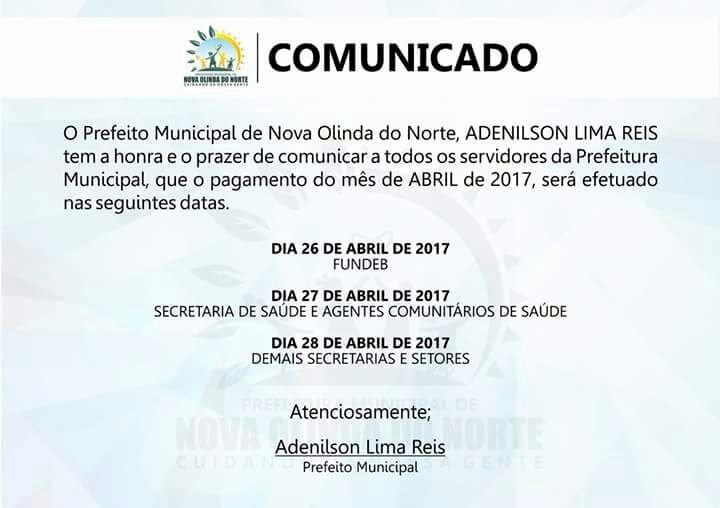 A administração do prefeito Adenilson Lima Reis demonstra respeito aos funcionários públicos e sinaliza que há uma organização administrativa no município, por outro lado os servidores públicos da prefeitura podem programar os seus compromisso de pagamentos.
