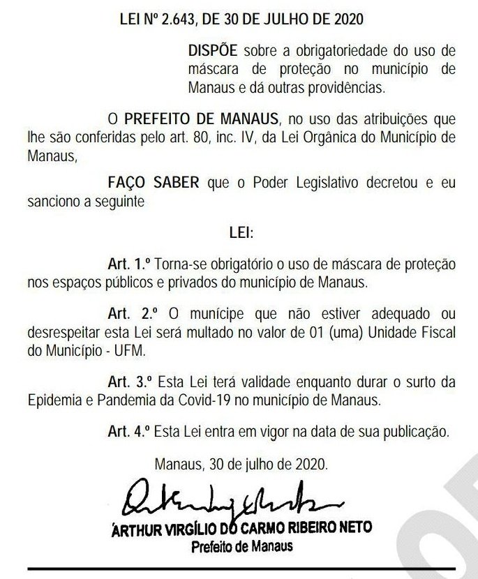 Manaus/AM – Nova lei Nº 2.643 dispõe a obrigatoriedade do uso do item em espaços públicos e privados da capital amazonense. Quem não utilizar, ou mesmo usar de forma incorreta, poderá pagar caro, veja a lei a seguir: