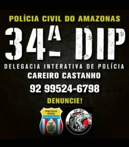 Se alguém souber de alguma informação entre em contato com o 34 DIP – Delegacia Interativa de Polícia do Careiro pelo número (92) 99524-6798.