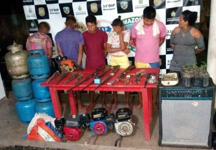 Além dos 71 pés de maconha, também foram apreendidas três botijas de gás, três motores tipo rabeta, uma caixa amplificada, uma TV LCD 55 polegadas, nove chaves, um alicate, oito malhadeiras, dez armas caseiras, uma espingarda calibre 32, uma lancha de 7 metros com um motor de 40HP, um motosserra e um cartucho calibre 28.