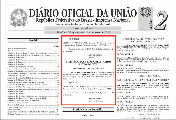 O presidente Michel Temer exonerou a economista Rebecca Garcia (PP) do cargo de superintendente da Suframa. A decisão foi publicada na edição desta quarta-feira (24) no Diário Oficial da União (DOU). Na mesma edição do DOU aparecem os nomes de duas figuras próximas do deputado federal Silas Câmara (PRB) que foram nomeadas como superintendentes adjuntos da autarquia.