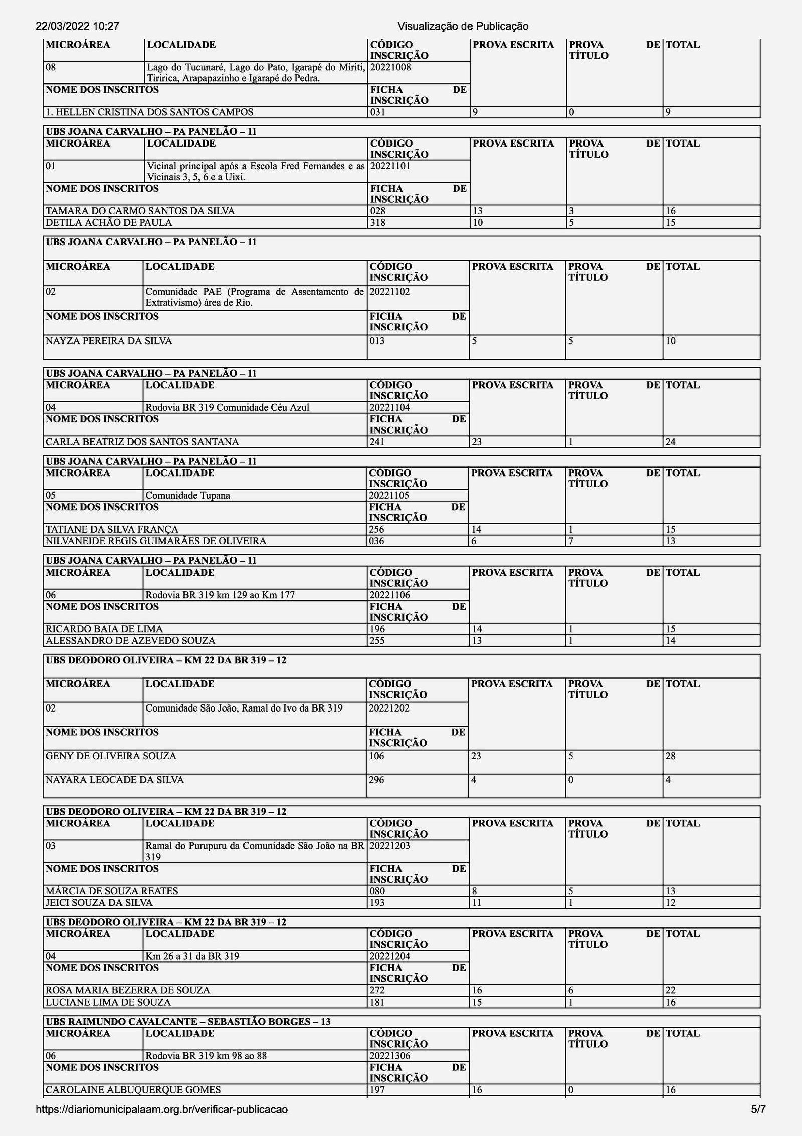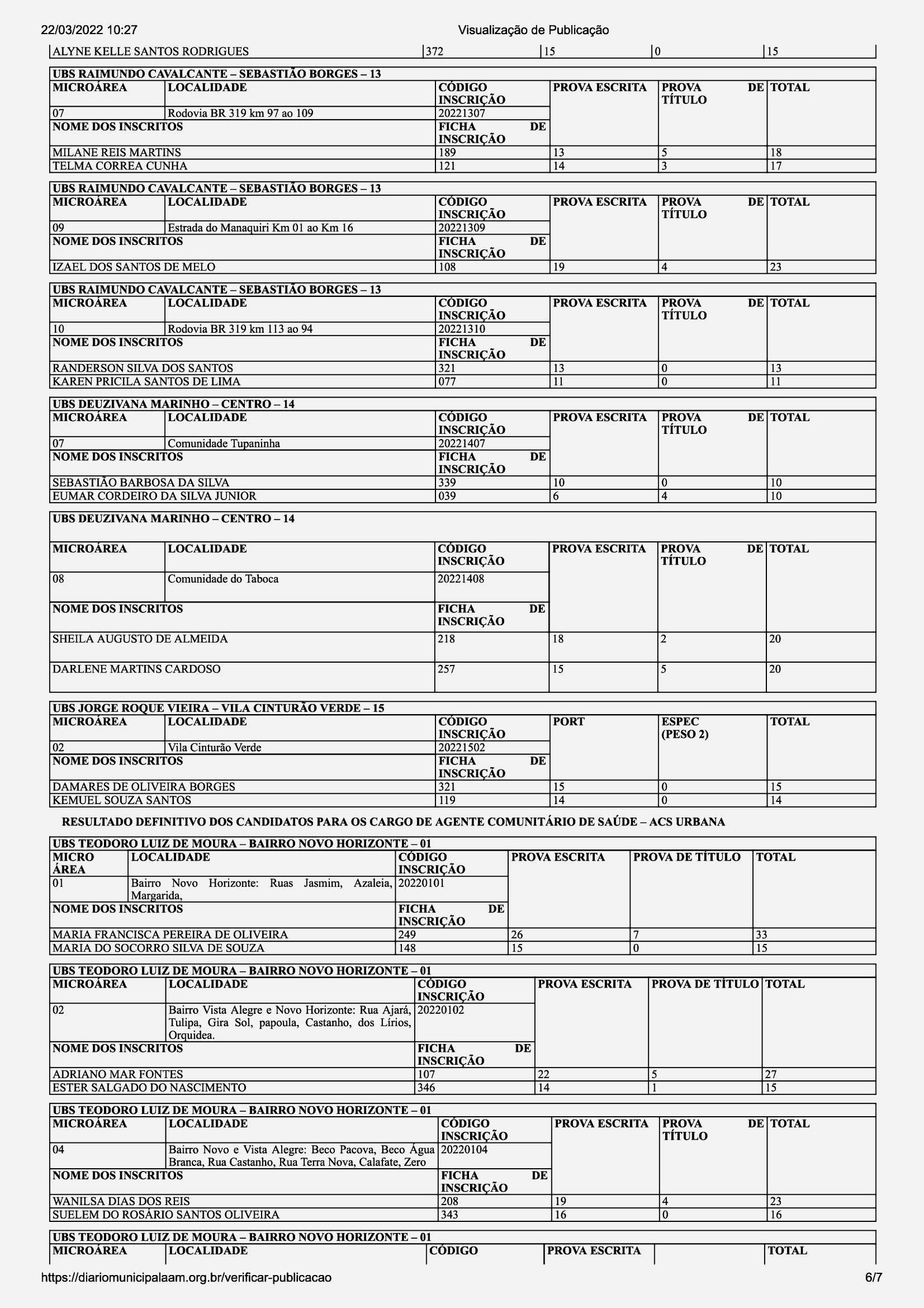 Careiro/AM – Foi publicado no Diário Oficial dos Municípios do Estado do Amazonas de hoje (22) o resultado do PSP para os Cargos de Agente Comunitário de Saúde e Agente Comunitário de Endemias do Processo Seletivo Público da Prefeitura Municipal do Careiro – Edital Nº 01/2022, veja a seguir:
