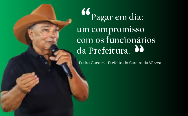 Pedro Guedes – Não conheço pessoalmente o prefeito de Careiro da Várzea, Pedro Guedes, mas um vídeo publicado por ele ontem (27) nas redes sociais chamou minha atenção pelo compromisso assumido de manter o pagamento dos servidores municipais em dia. Sendo o prefeito Pedro Guedes, o salário de novembro foi pago ontem (27) e hoje será pago o 13º salário.