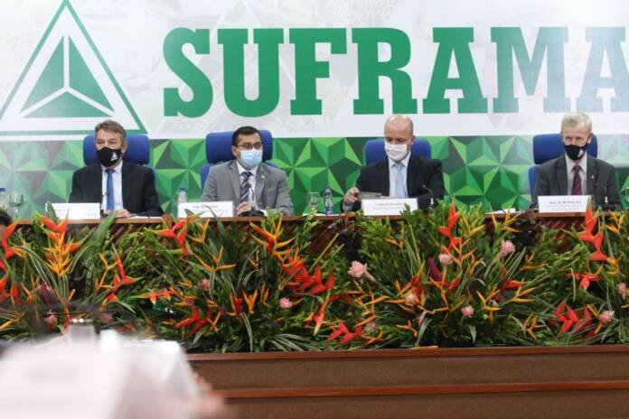 CAS – A reunião do CAS também contou com a participação do governador Wilson Lima, do superintendente da Suframa, general Algacir Antônio Polsin e do secretário especial de Produtividade, Emprego e Competitividade do Ministério da Economia (Sepec/ME), Carlos Da Costa que presidiu a reunião do CAS.